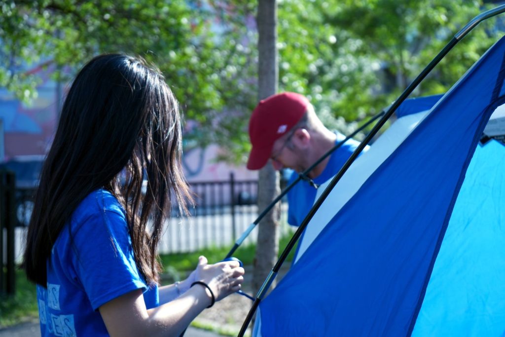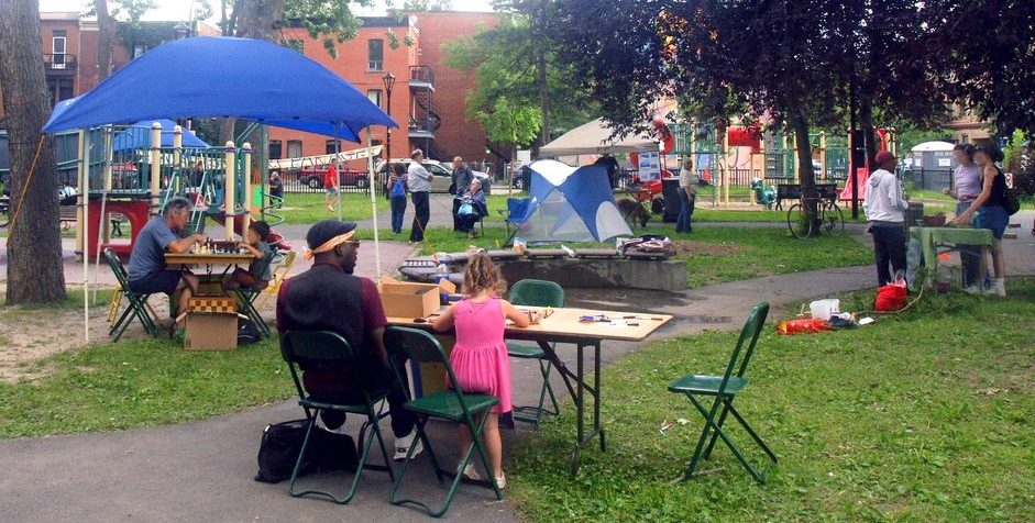 Après l’installation des chapiteaux, on voyait arriver nos animateurs d’ateliers incluant les organismes qui s’installent en regardant les enfants s’amuser. On sentait enfin que la fête commence. Une mère avec sa poussette observait ses deux filles qui s’assoient à l’atelier de sculpture de fil de fer, la tente de lecture accueillait ses premiers invités et les adultes se rassemblaient autour de la table à café. Plus loin, une jeune du quartier arrivait dans le parc avec un jeu de Loup-Garou qu’elle venait d’acheter à Bric-à-brac pour jouer avec ses amis.